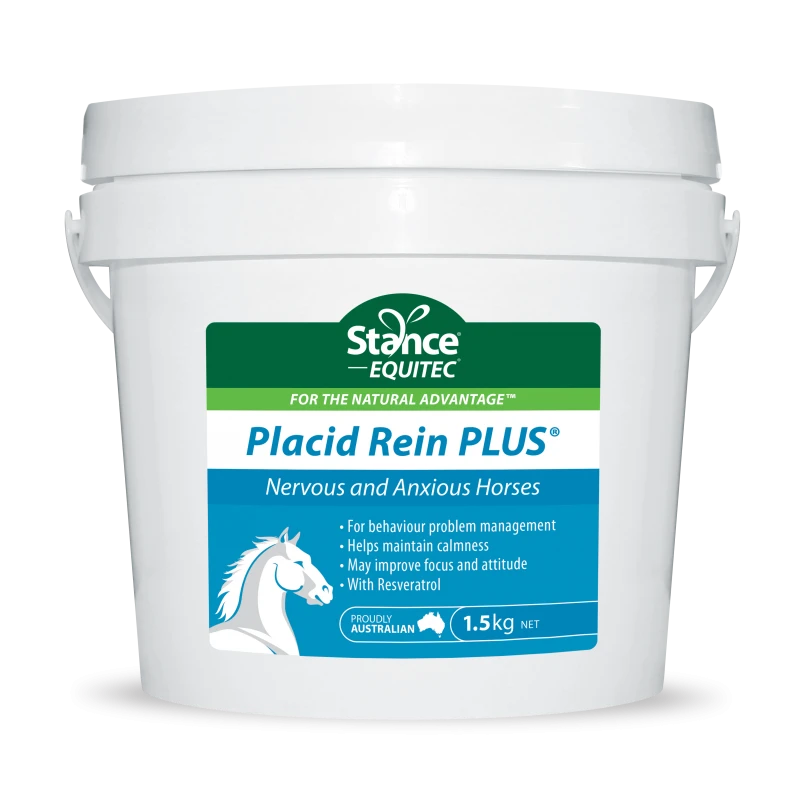 Placid Rein PLUS is a unique powdered formula designed to support normal stress in horses and to help maintain a consistent attitude to work whether at home or away.