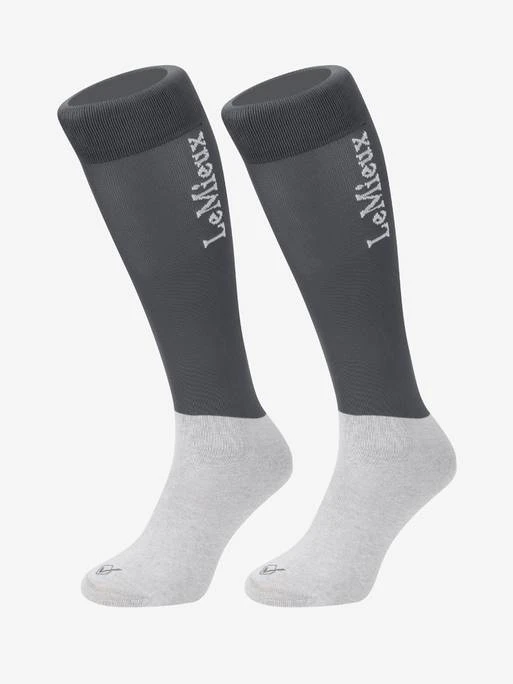 Lightweight ultra close contact riding socks from LeMieux. Seamless low profile fabric offers compression that enhances the fit of long boots. Socks to be worn and not thought about.