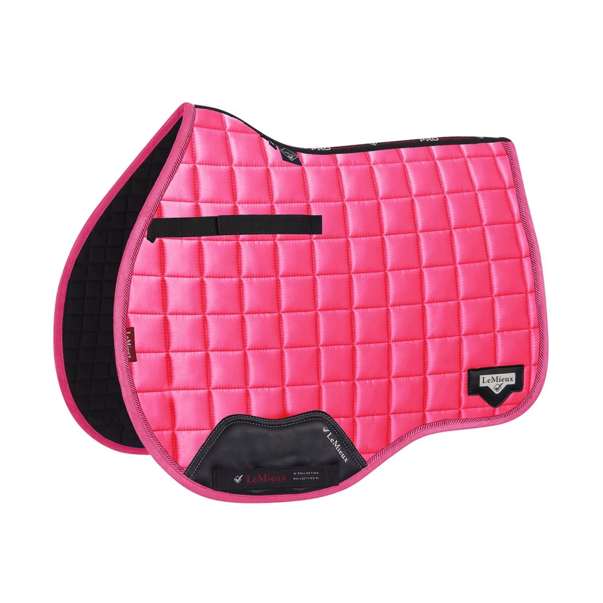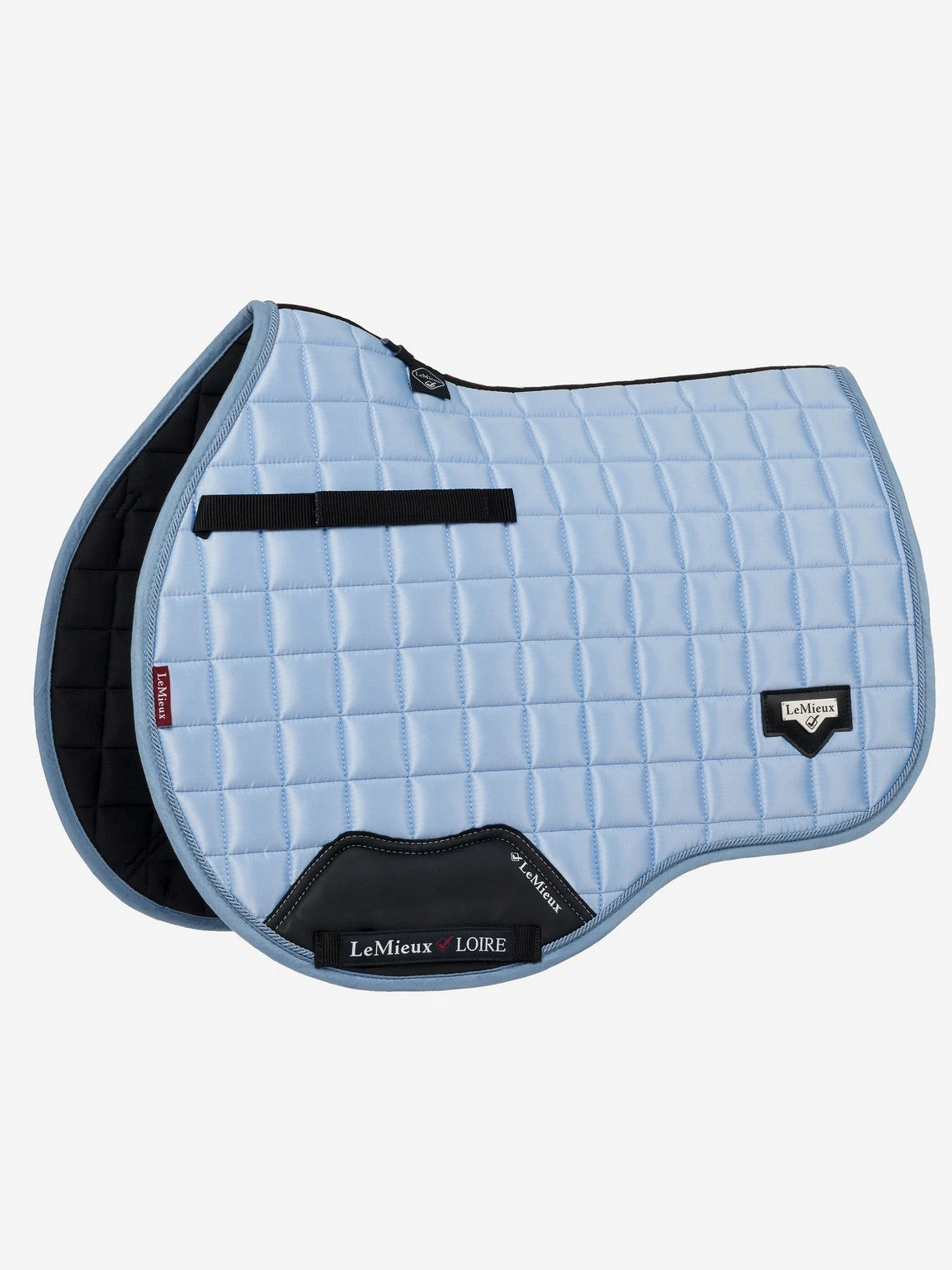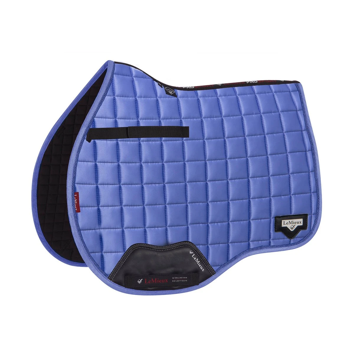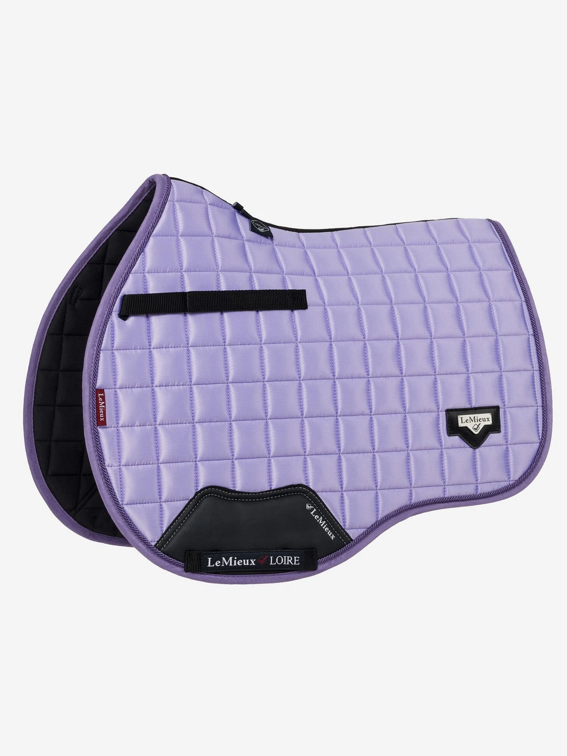 The textured pu leather girth protection area is complimented by an embossed logo and carries the usual signature LeMieux lower girth strap with its inner locking loops. The piece de resistance of the Loire GP Square is its unique metal badge on a leather mount in the lower back corner