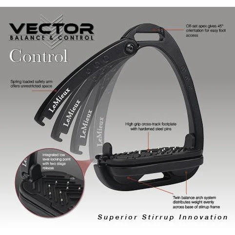 The LeMieux Vector stirrups are a new generation of safety stirrup – technically advanced and lightweight, but retaining a classic style expected from LeMieux