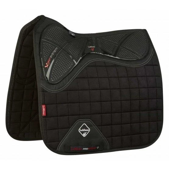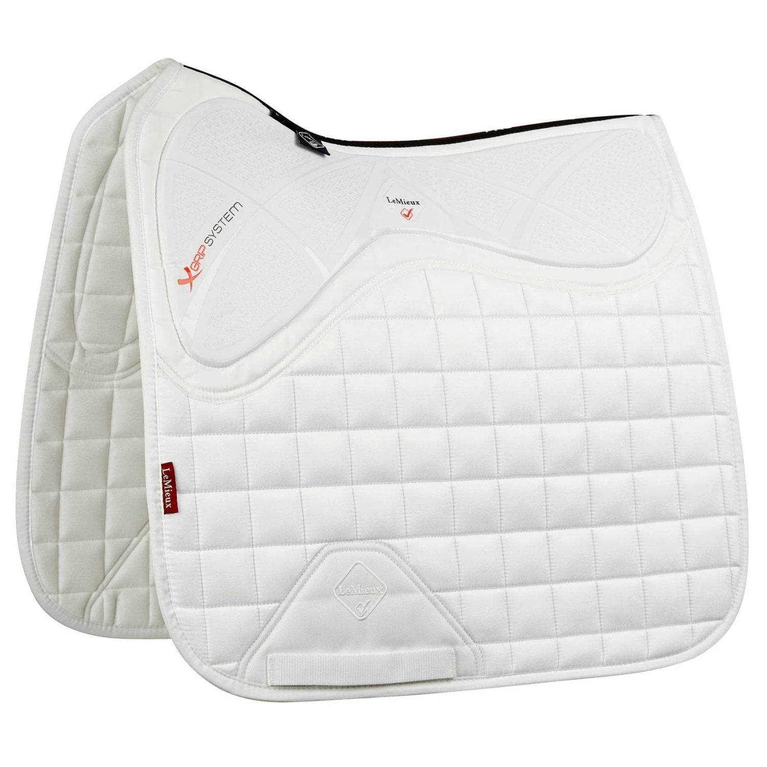 The X-Grip Dressage square combines the stylish, iconic LeMieux cut with the new X-Grip silicone design to ensure saddle stability and grip. The Memory Foam under the saddle area aids with comfort and shock absorbency. The unique blast foam core has been through a process where hot air is forced through the memory foam under pressure to create the extremely breathable yet supportive and lightweight perforated material.Â