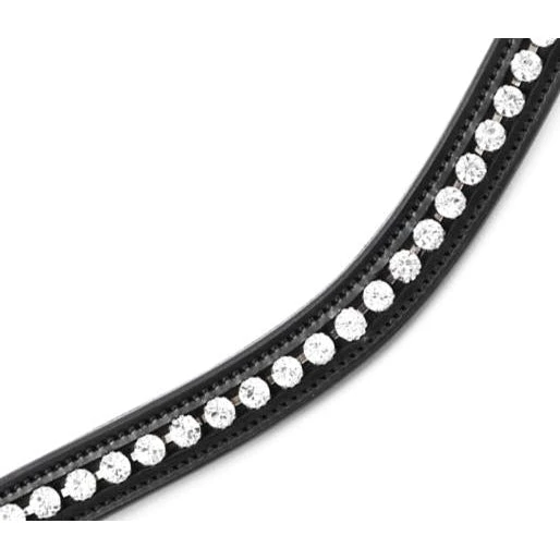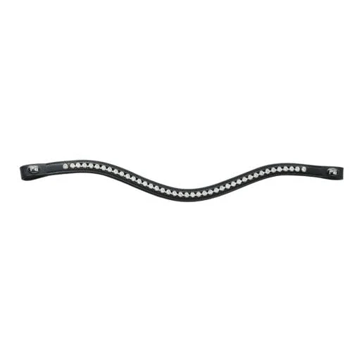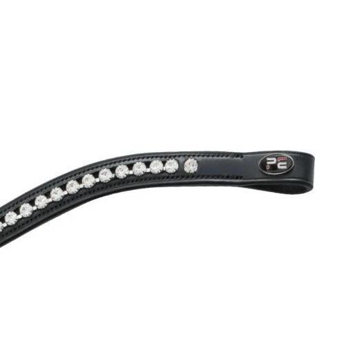 The Bellissima features a row of shimmering, circular diamantes backed on to finest quality Italian leather. A subtle, dipped shape helps highlight your horse’s face and creates a stunning silhouette. ‘PE’ branded brooches sit neatly at either end of the band providing a sleek and professional finish. This diamante browband offers show stopping style both at home and at competitions.